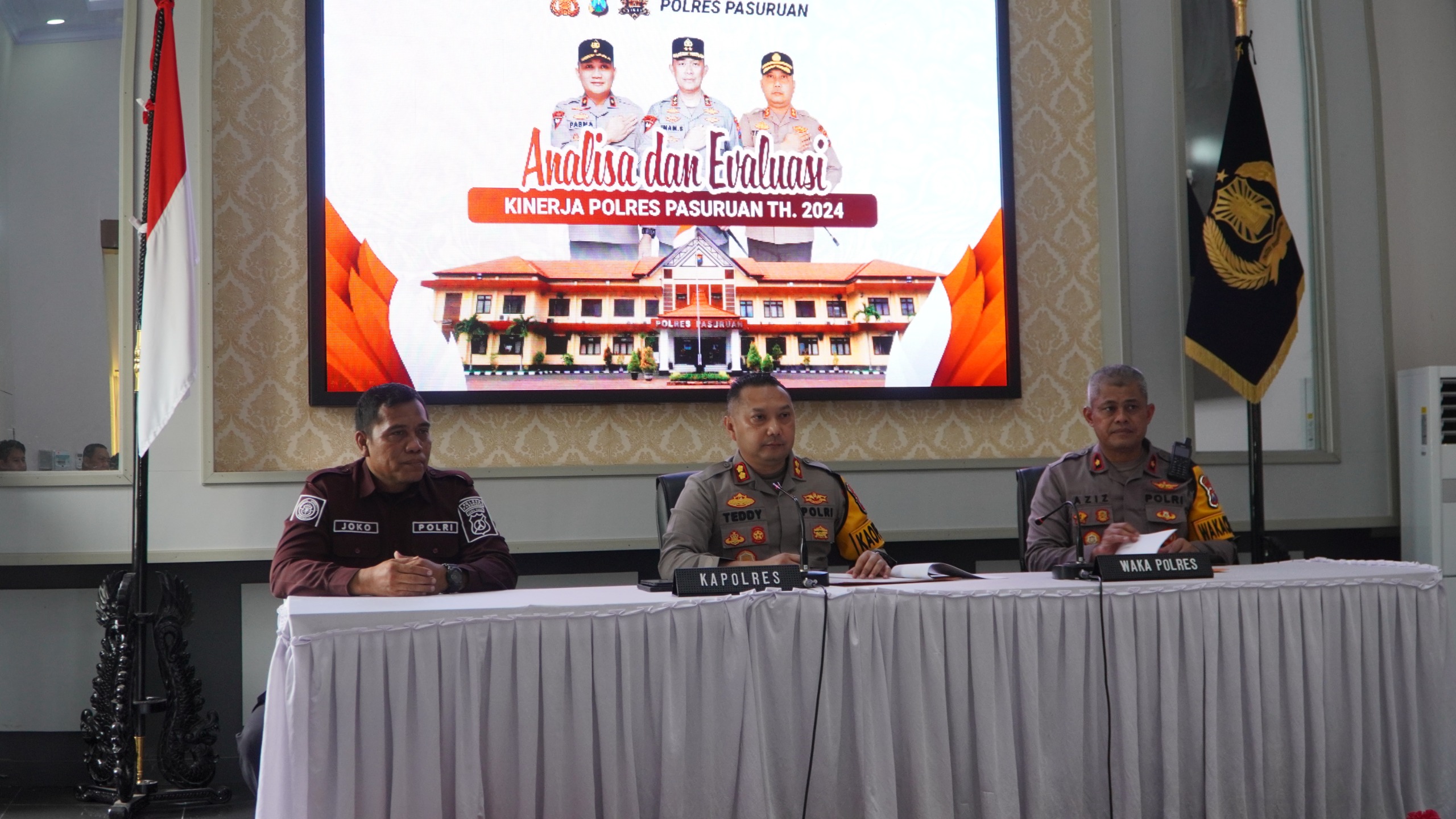 Kapolres Pasuruan, AKBP Teddy Chandra, S.I.K., M.Si. menyampaikan apresiasinya kepada seluruh jajaran dan masyarakat yang telah berkontribusi dalam menjaga situasi keamanan dan ketertiban masyarakat (Kamtibmas) yang tetap kondusif selama tahun 2024, termasuk pada pelaksanaan Pemilu dan Pilkada serentak di 254 desa dan 17 kecamatan.