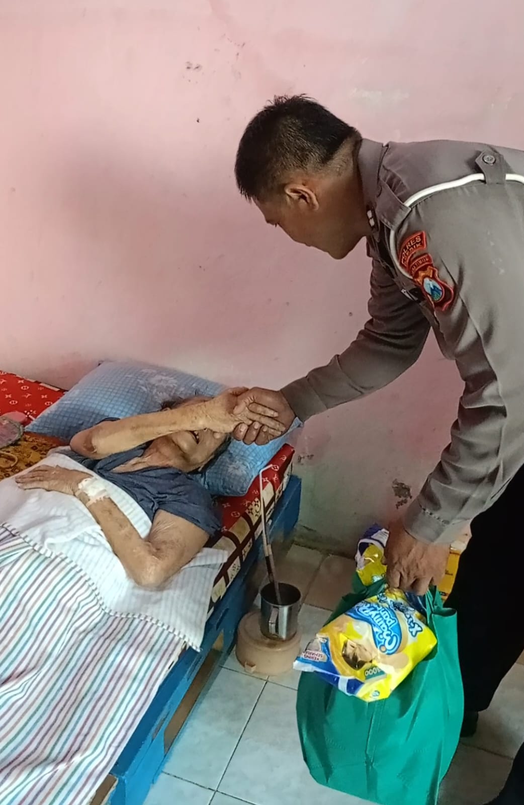 Aiptu Suwito mengunjungi kediaman Bu Saidah, seorang lansia yang telah terbaring di tempat tidur selama sembilan tahun akibat penyakit kronis. Dalam kunjungan tersebut, ia membawa bantuan berupa sembako sebagai wujud empati dan kepedulian terhadap kondisi Bu Saidah yang memprihatinkan.