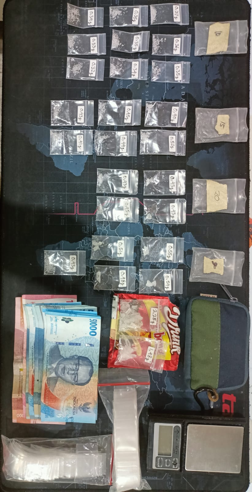 “Setelah dilakukan penggeledahan, kami menemukan 26 paket narkotika jenis sabu dengan berat total 4,72 gram yang diakui milik tersangka. Selain itu, juga ditemukan barang bukti lain berupa timbangan elektrik, dompet kecil, uang tunai hasil penjualan sebesar Rp 650.000, serta dua pak plastik klip kosong,” ujar AKBP Suria Miftah, pada Selasa (04/03/2025).