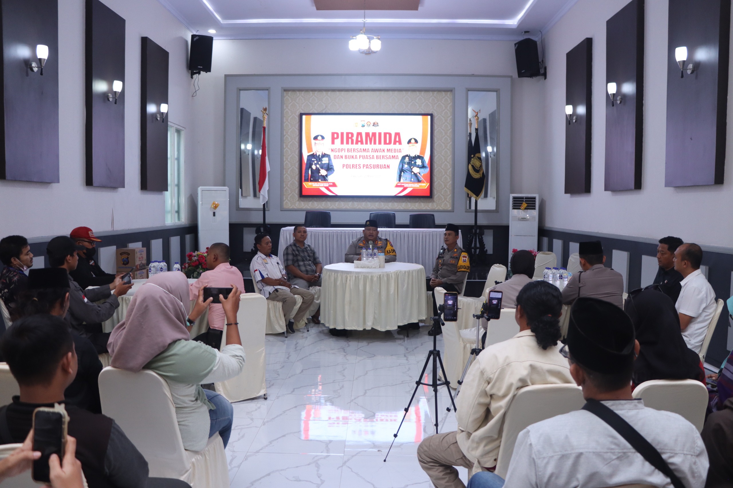 Pasuruan, Initerkini.com – Dalam rangka menjalin silaturahmi dan mempererat sinergitas bersama rekan rekan media, Kapolres Pasuruan mengadakan acara ngopi bersama awak media dan buka puasa bersama yang di kemas dalam acara “PIRAMIDA”, Selasa Sore (25/03/25) bertempat di gedung tribrata Polres Pasuruan.