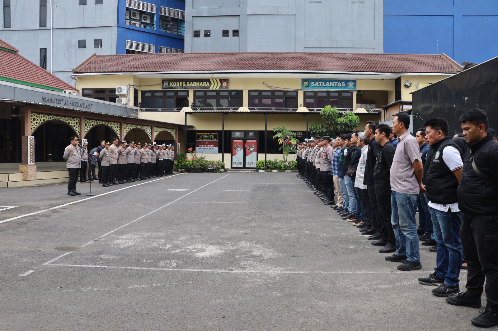 Dalam kegiatan apel yang dimulai pukul 16.00 WIB, hadir sejumlah pejabat utama dan personel gabungan dari berbagai satuan, termasuk Sat Samapta, Sat Lantas, Sat Intelkam, Sat Reskrim, dan Sat Narkoba Polres Pelabuhan Tanjung Perak.