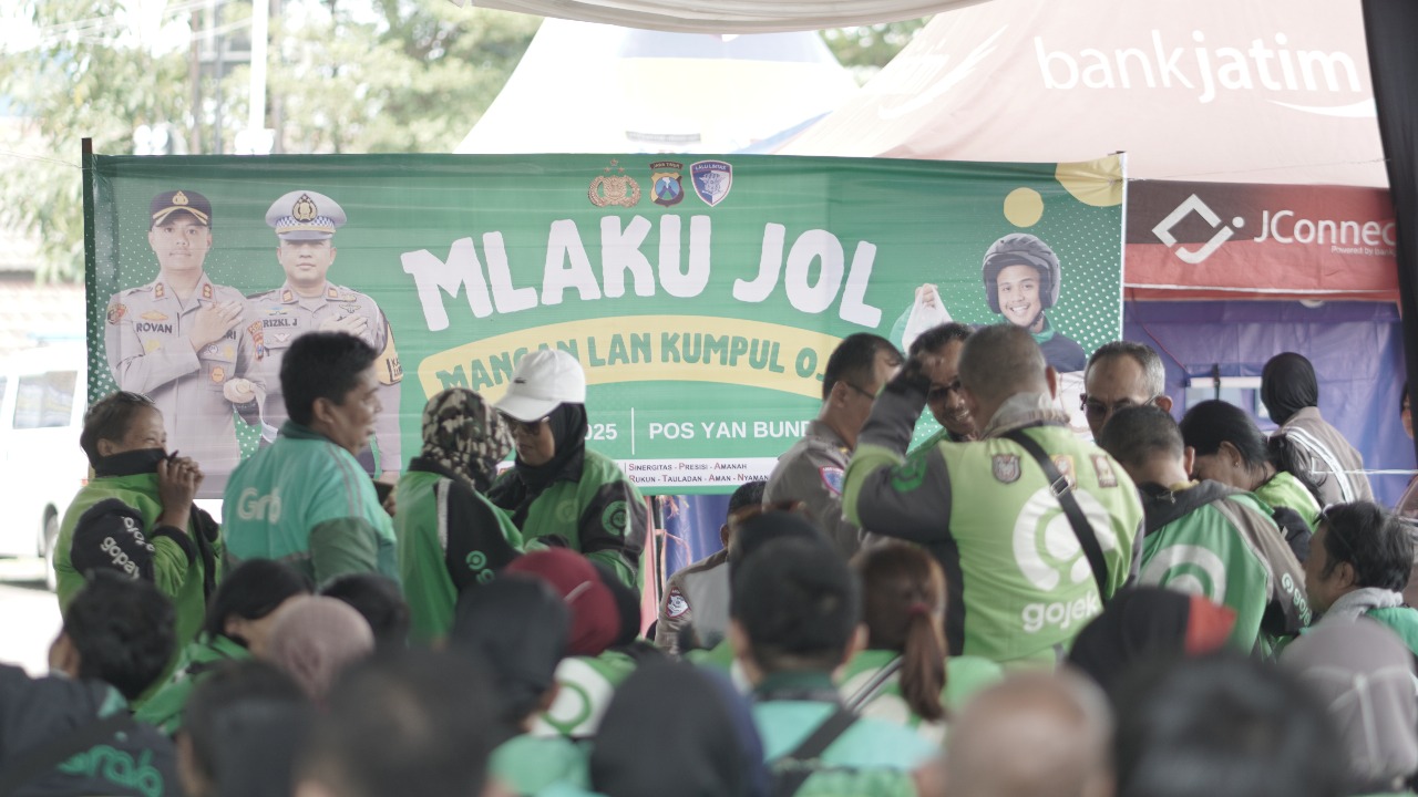 Satlantas Polres Gresik Gelar “MLAKU JOL” Bersama Ratusan Driver Ojol Di Posyan Ops Ketupat Semeru 2025