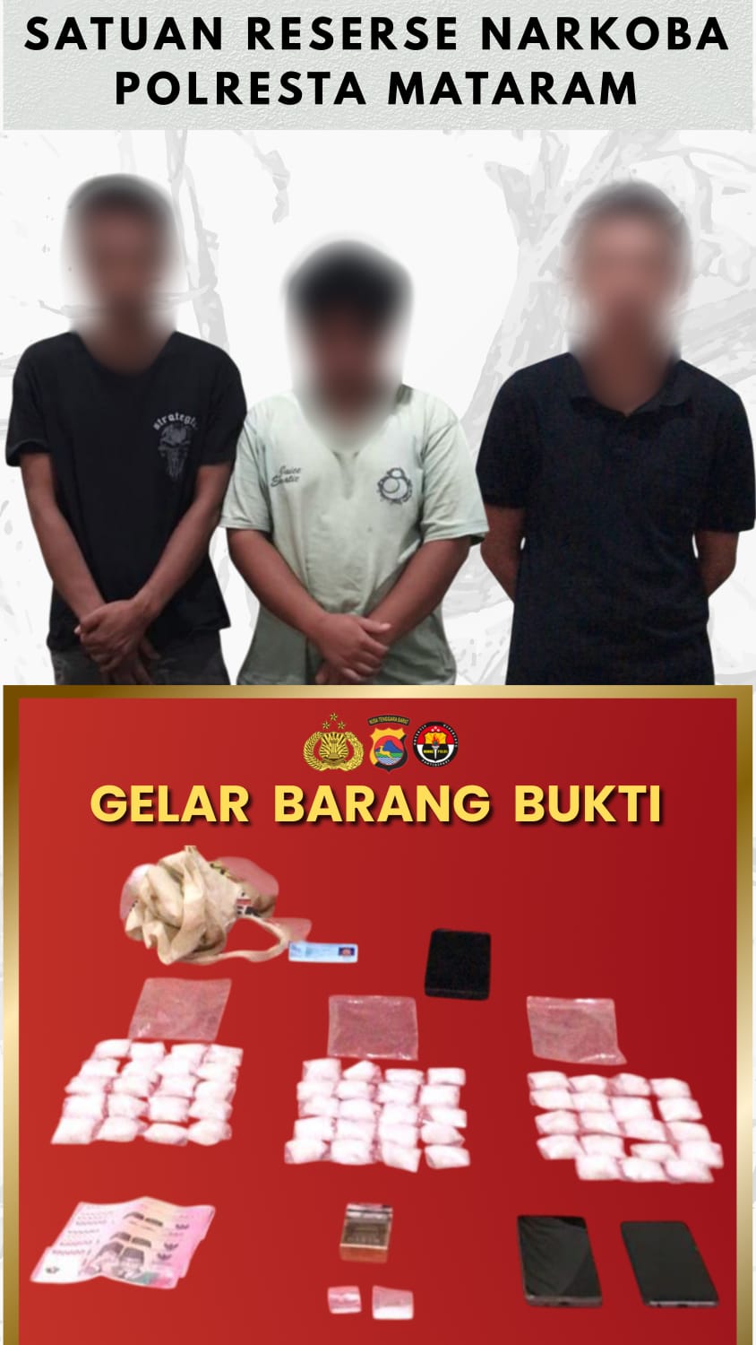 Dari pengungkapan ini Tiga Pria terduga pelaku RT (45), TA (19) dan AH (21) warga kecamatan Narmada Lombok Barat diamankan beserta barang bukti Sabu seberat 330,95 gram brutto.
