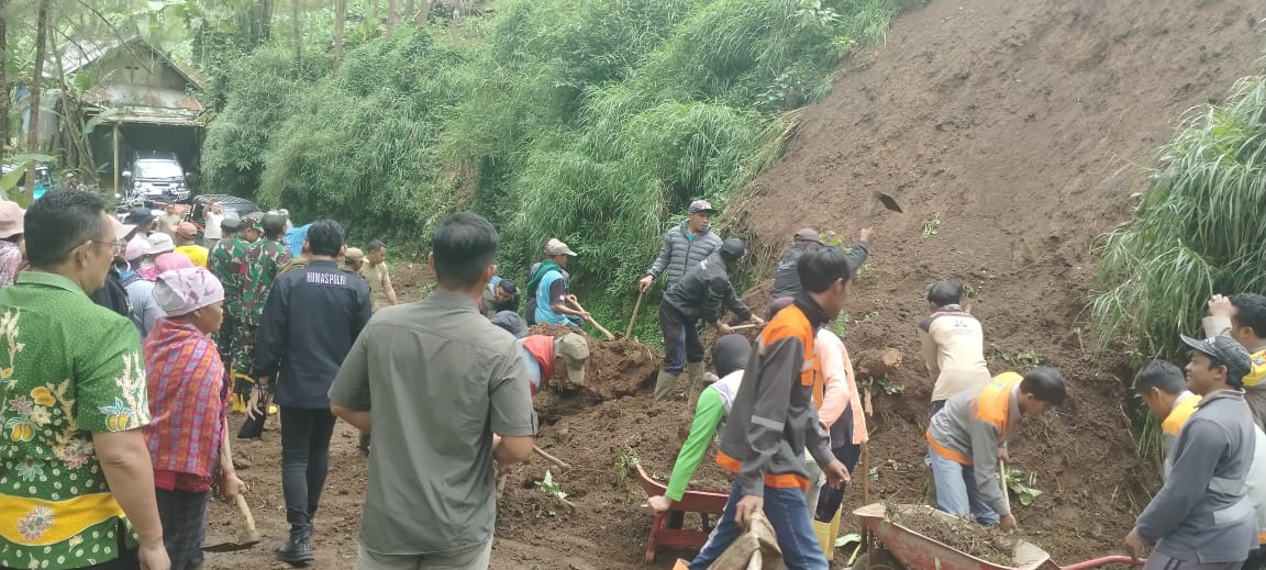 Tosari, Initerkini.com – Sinergi antara Polsek Tosari, TNI, pemerintahan kecamatan, dan masyarakat membuahkan hasil dalam penanganan bencana longsor yang terjadi di wilayah Tosari, Kabupaten Pasuruan, Kamis (15/5/2025). Longsor yang dipicu hujan deras semalaman menyebabkan akses kendaraan dari arah selatan Pasir menuju wilayah Kabare sempat terhambat dan menimbulkan kemacetan, terutama kendaraan roda dua yang tengah melaksanakan perjalanan wisata menuju Gunung Bromo melalui jalur Romo Tengger.