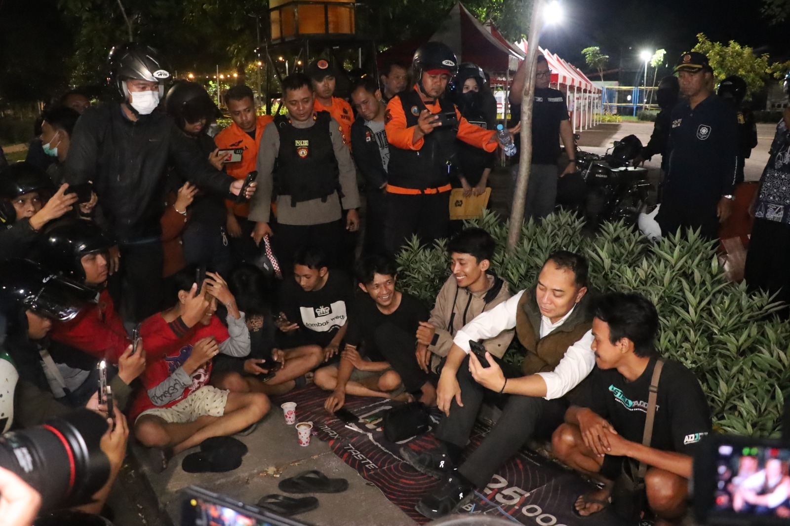 Setelah itu, wali kota beserta tiga pilar mendapat informasi gerombolan pemuda pesta miras di Jalan Kenjeran, Surabaya. Petugas gabungan langsung ke lokasi dan mengamankan pemuda ini. Mereka diserahkan ke polsek untuk dilakukan pembinaan.