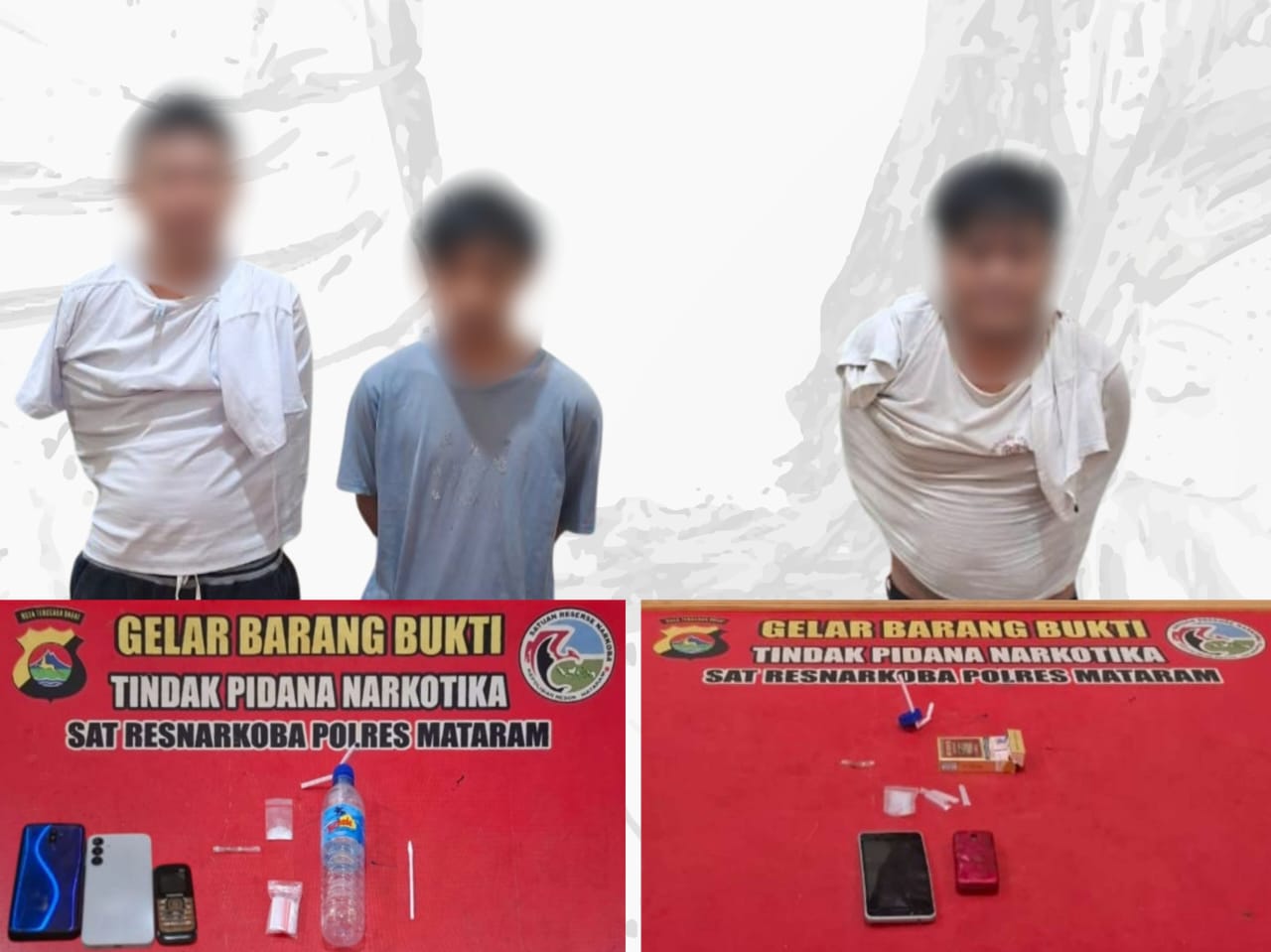 Ketiganya kini telah dibawa ke Mapolresta Mataram guna menjalani pemeriksaan intensif oleh penyidik Satresnarkoba.
