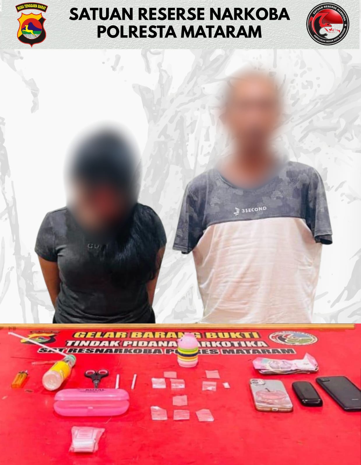 Kini, kedua terduga sedang menjalani pemeriksaan intensif di Mapolresta Mataram. Penyidik menjerat mereka dengan Pasal 114 dan Pasal 112 ayat (1) UU Nomor 35 Tahun 2009 tentang Narkotika, dengan ancaman hukuman minimal 5 tahun penjara.