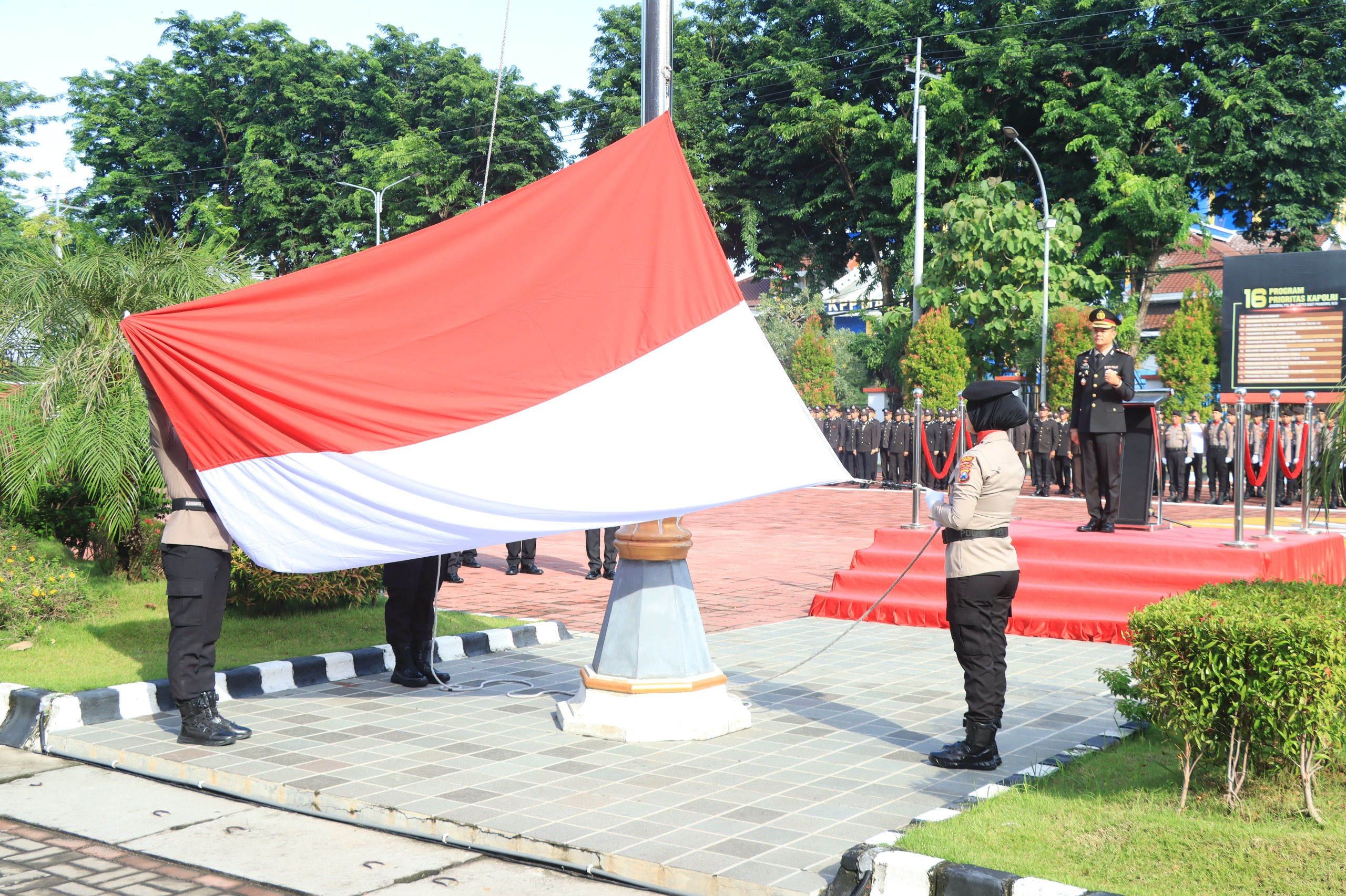 Upacara dipimpin langsung oleh Kapolres Gresik, AKBP Rovan Richard Mahenu, selaku Inspektur Upacara. Kegiatan tersebut diikuti Wakapolres Gresik Kompol Shabda Purusha Putra, jajaran Pejabat Utama (PJU), para Kapolsek, serta seluruh personel Perwira, Bintara, dan ASN Polres Gresik.